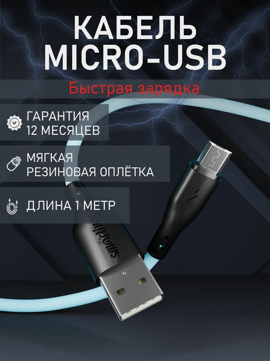 Кабель Smartbuy USB - micro USB, нейлон. оплетка Socks, 1 м.,