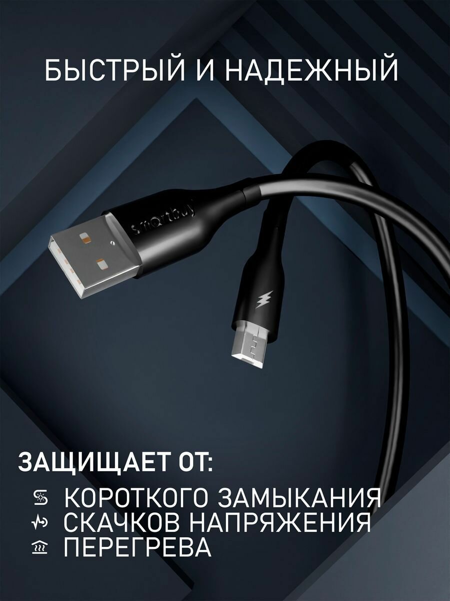 Кабель SmartBuy iK-12NS, USB 2,0 A-microUSB B, в оплетке, 2A output, 1 м (iK-12NS black)