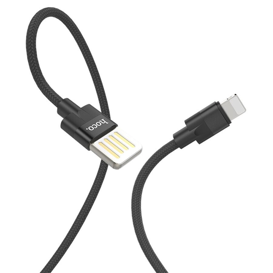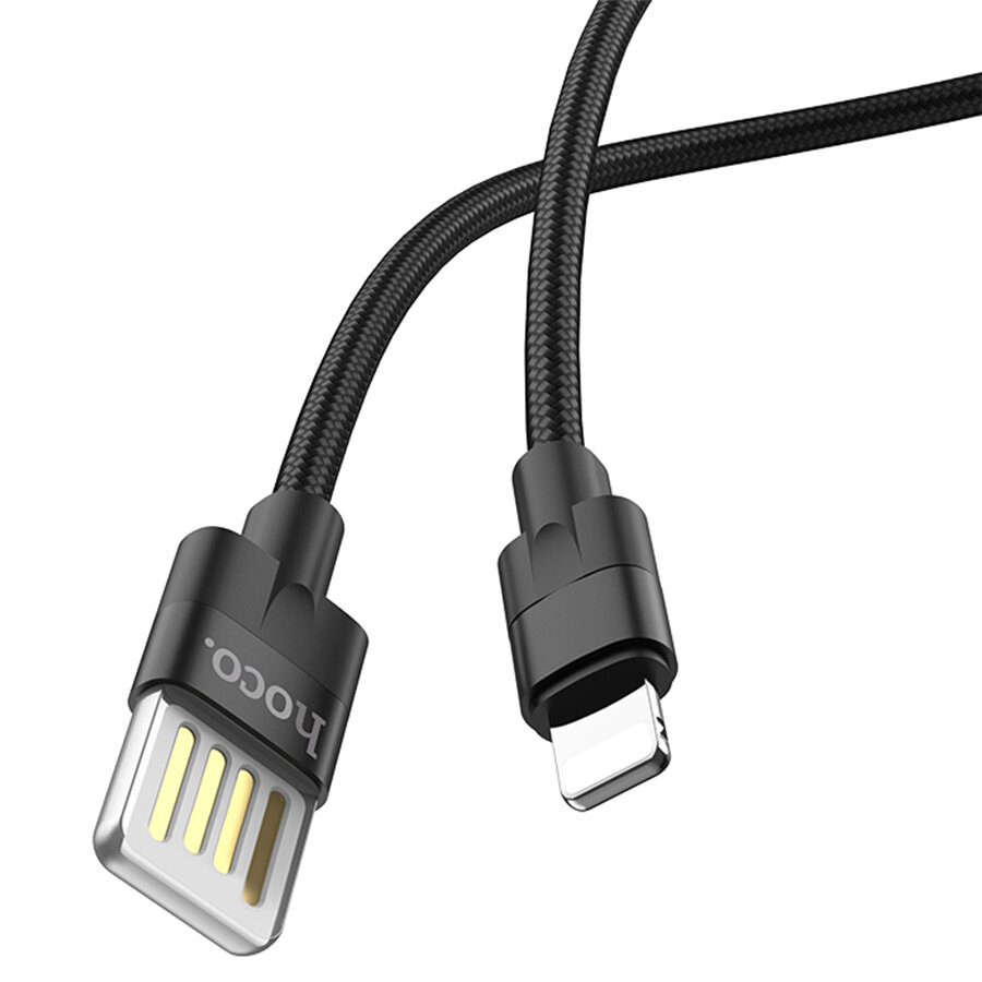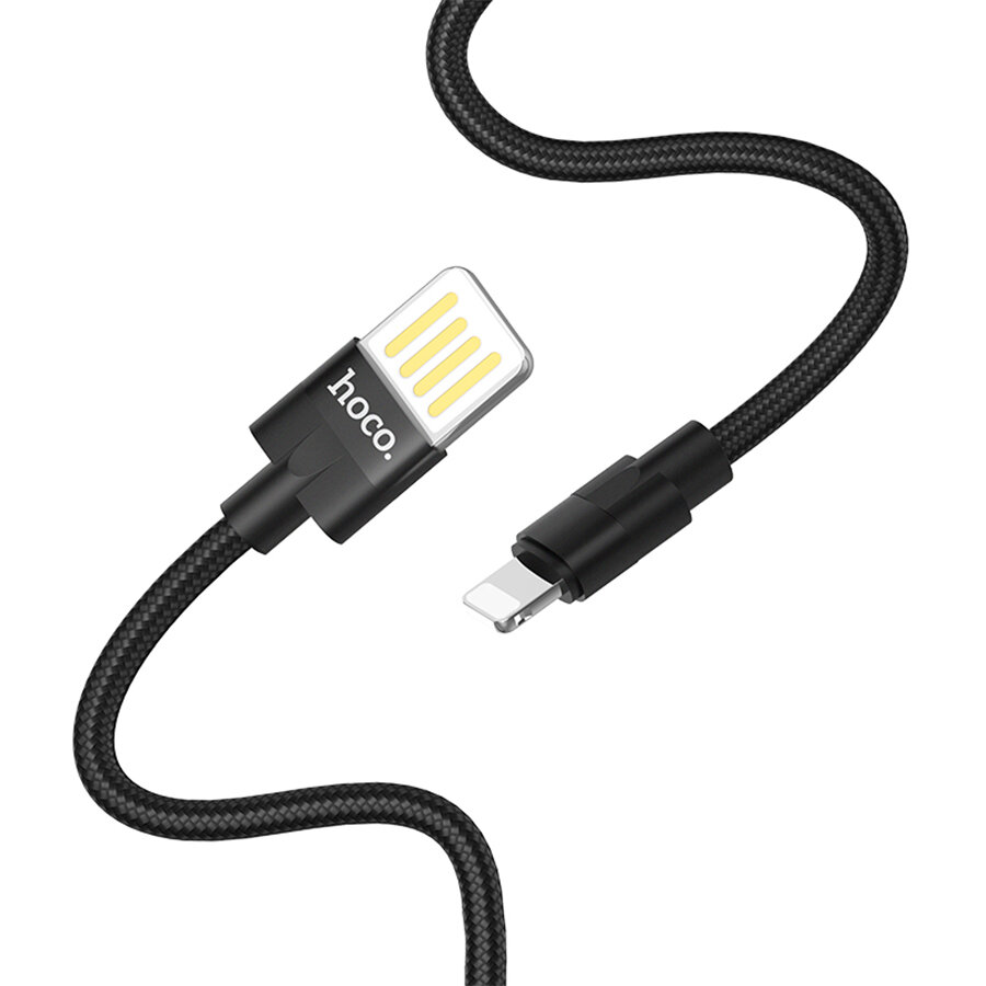 USB кабель HOCO U55 Outstanding Lightning 8-pin, 2.4А, 2-сторонний USB, 1.2м, нейлон (черный)