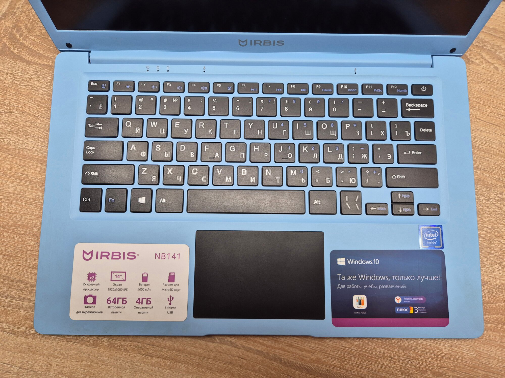 14.1" Ноутбук Irbis NB141 (NB141) голубой - 1920x1080, IPS, Intel Celeron N3350, ядра: 2 х 1,1 ГГц, 4 ГБ, eMMC 64 ГБ, Intel HD Graphics 500, Windows 10 интересное: