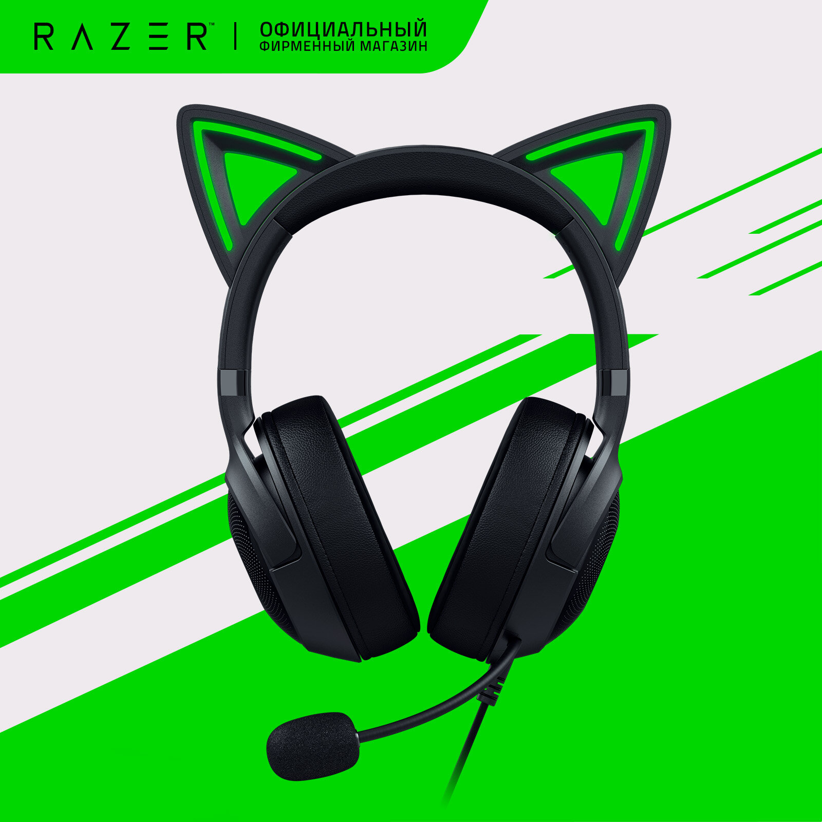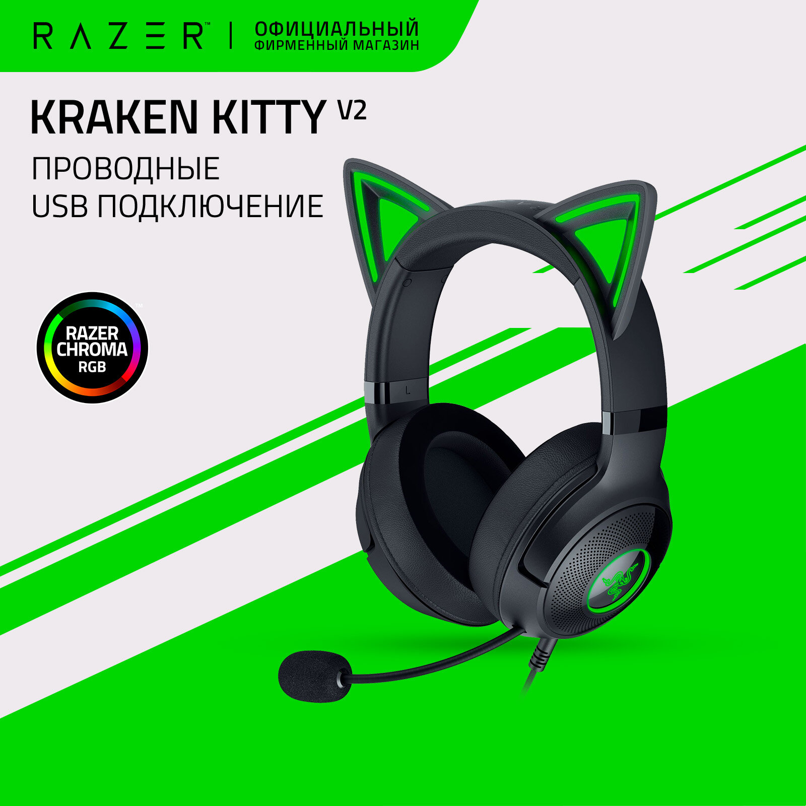 Купить Игровые наушники Razer Kraken Kitty V2 (Black) ушки с RGB подсветкой, USB подключение