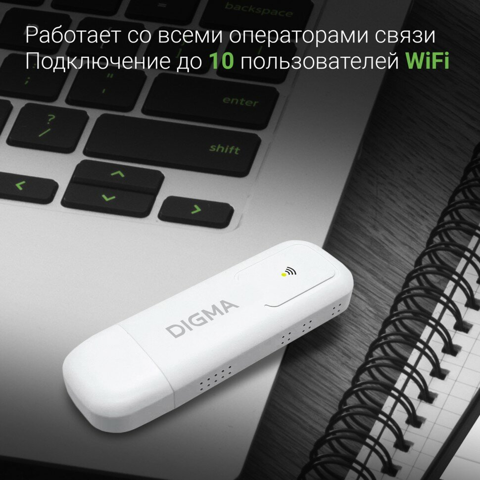 Модем 3G/4G DIGMA DONGLE USB Wi-Fi +Router внешний белый