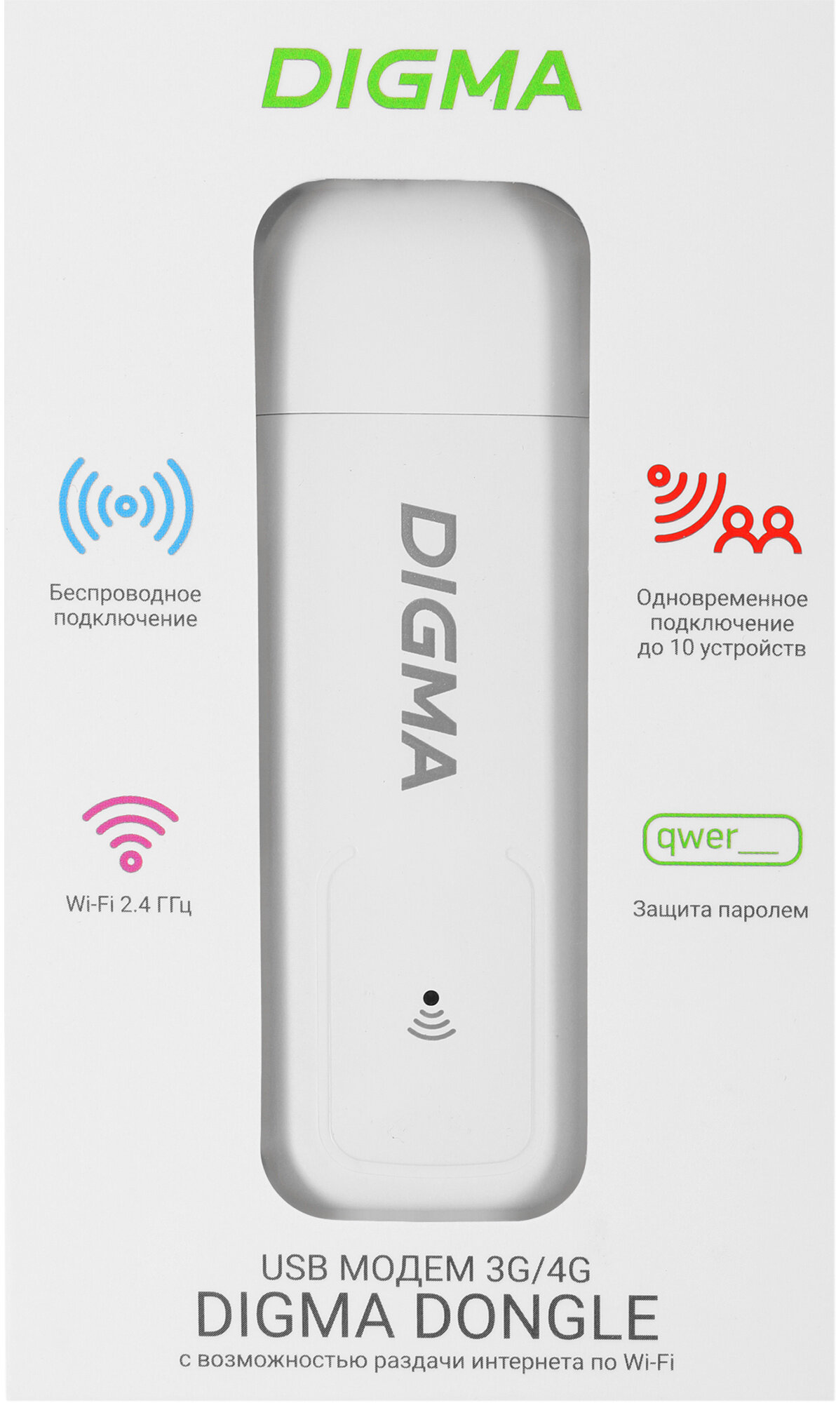 Модем Digma Dongle USB Wi-Fi Firewall Белый