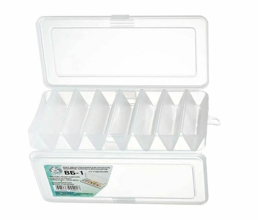 Коробка для воблеров и балансиров ВБ-1 белая 2-х стор.(7+7отд.)(190х85х35мм)