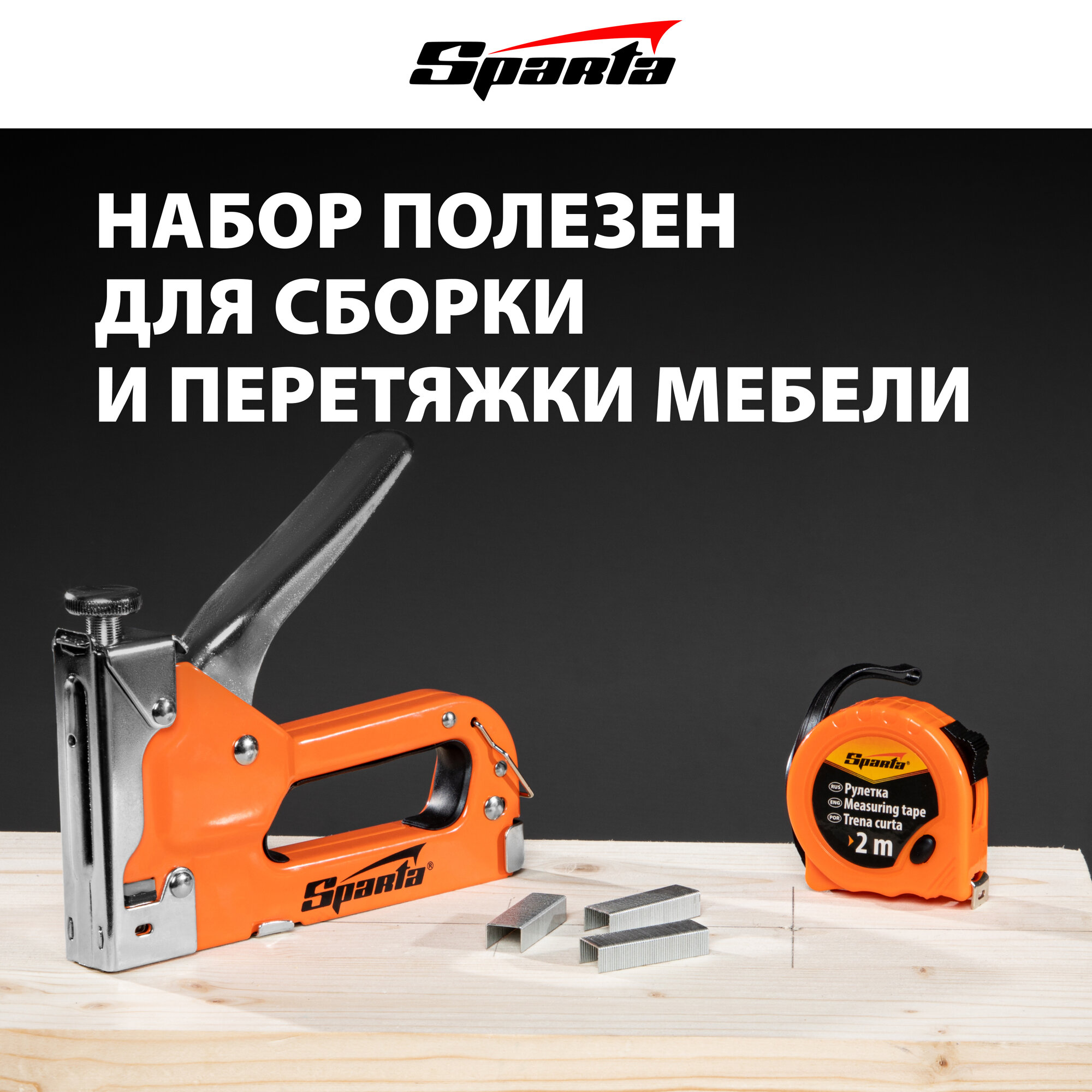 Набор: Степлер Мебельный Регулируемый, Скобы 500 Шт, Рулетка 2м., Тип Скобы 53, 4-14 Мм// Sparta Sparta арт. 42003