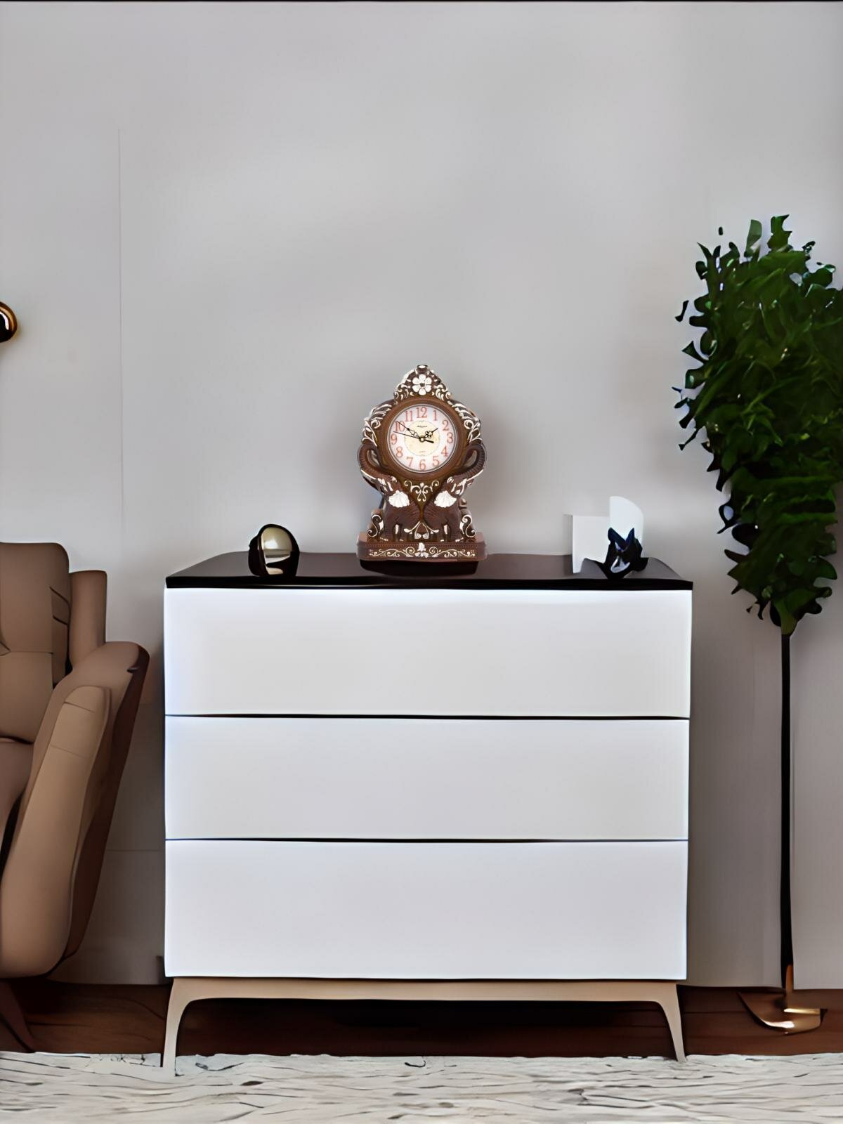 Фигурные настольные часы MIRRON P3011B СБ/Часы со слонами/Часы с узорами/Светлый коричневый цвет корпуса/Светлый циферблат/Часы в комнату, спальню/Домашний декор/Накладные цифры