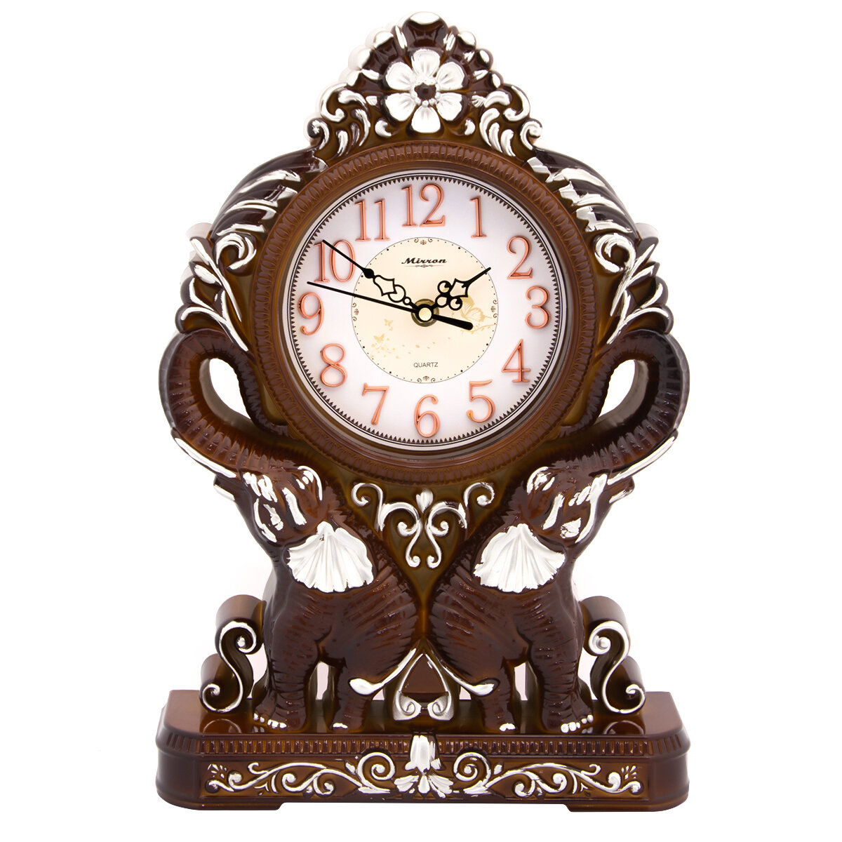 Фигурные настольные часы MIRRON P3011B КШБ/Часы со слонами/Часы с узорами/Коричневый цвет корпуса/Светлый циферблат/Часы в комнату, спальню/Домашний декор/Накладные цифры