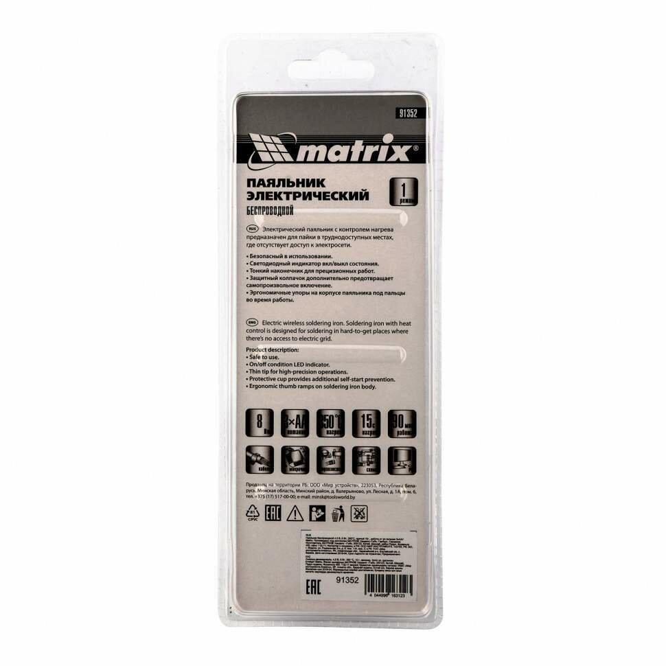 Паяльник беспроводной Matrix 91352 4.5 В, 8 Вт, 350°С, припой 10г, 3хАА