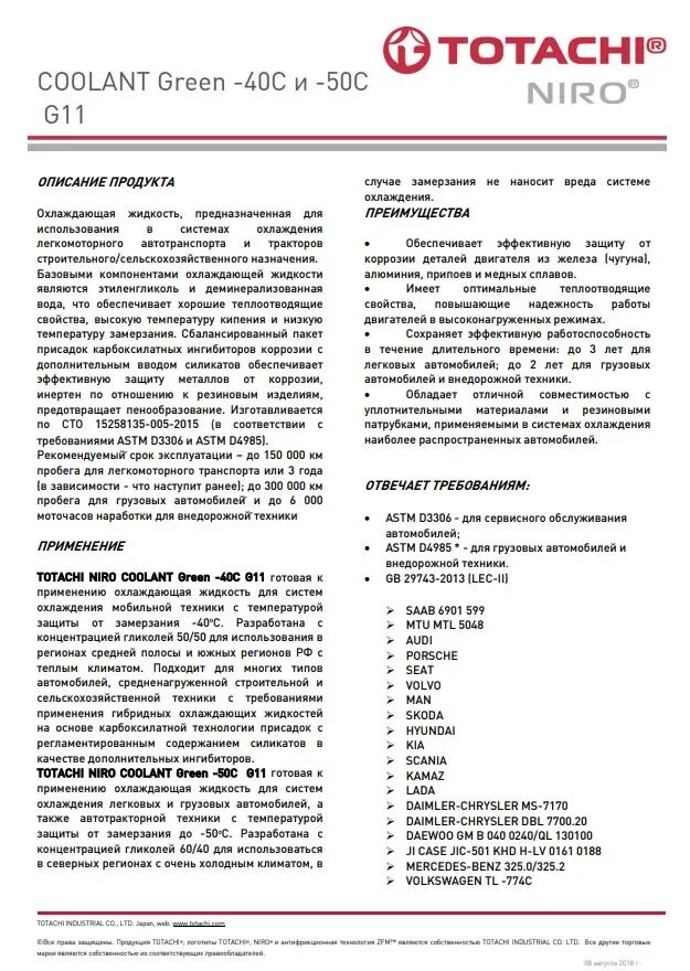 СохранитьАнтифриз TOTACHI GREEN G-11 (10кг) зеленый ASIN 4589904526893 интересное: