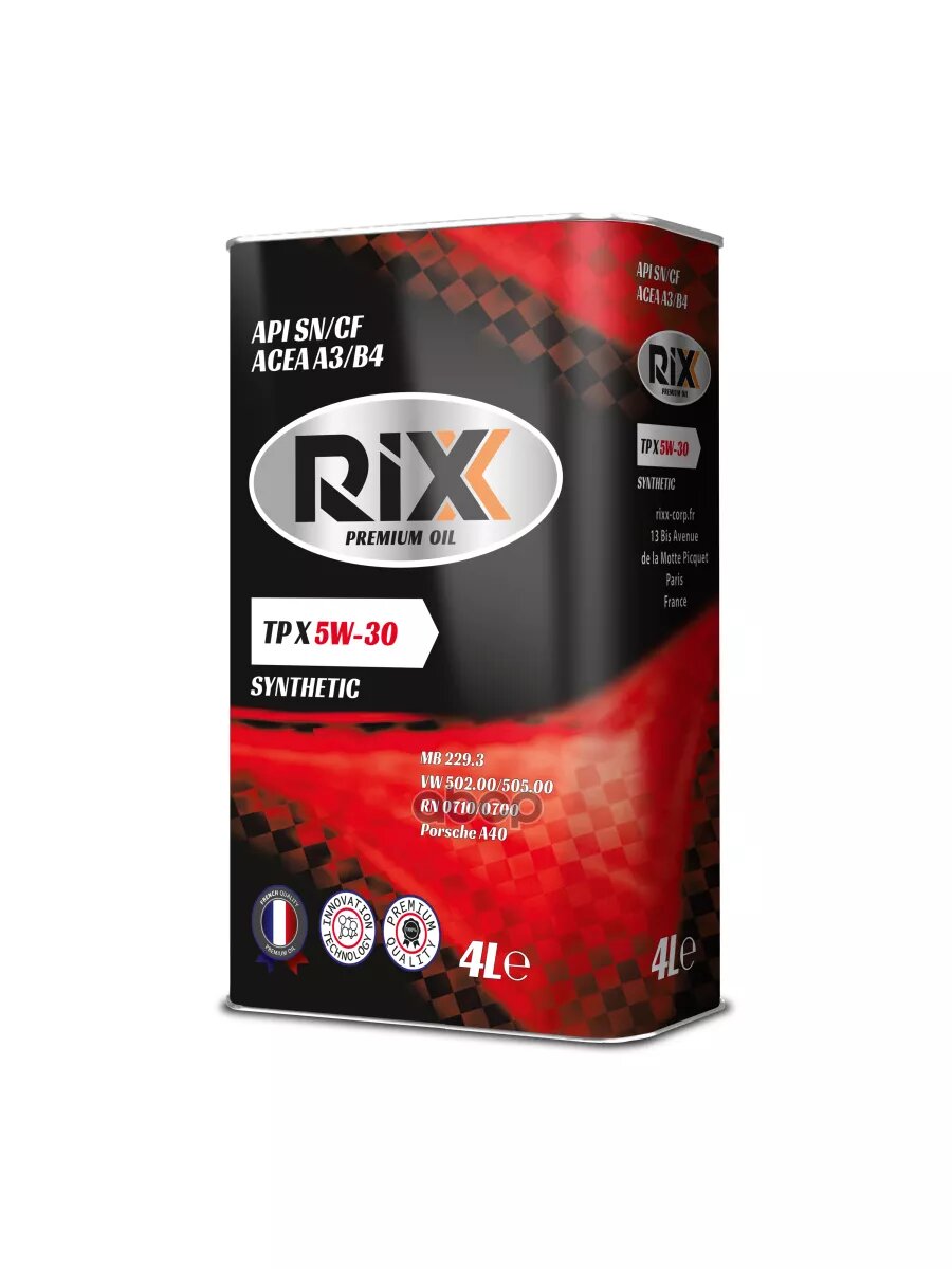 RIXX TP X SAE 5W-30 API SN/CF ACEA A3/B4 4 л, масло моторное синтетическое