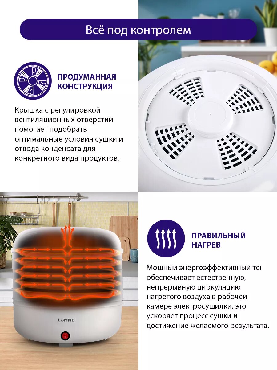 Сушилка для овощей и фруктов LUMME LFD-105PP, белый жемчуг