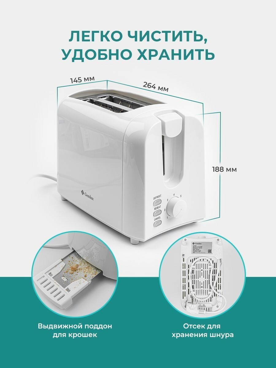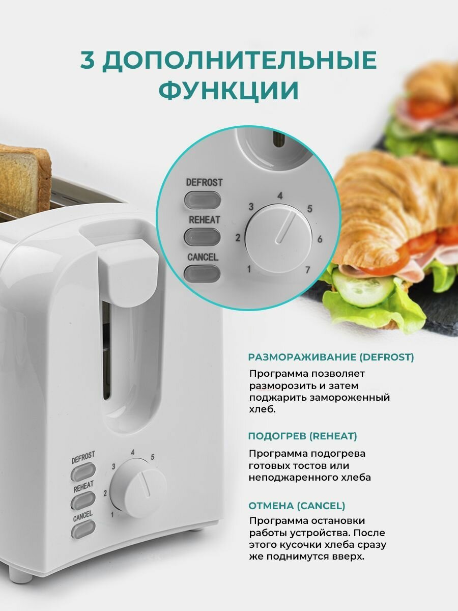 Тостер для хлеба электрический Gemlux GL-T210PW, белый, компактный, электротостер кухонный, бытовая техника для кухни интересное: