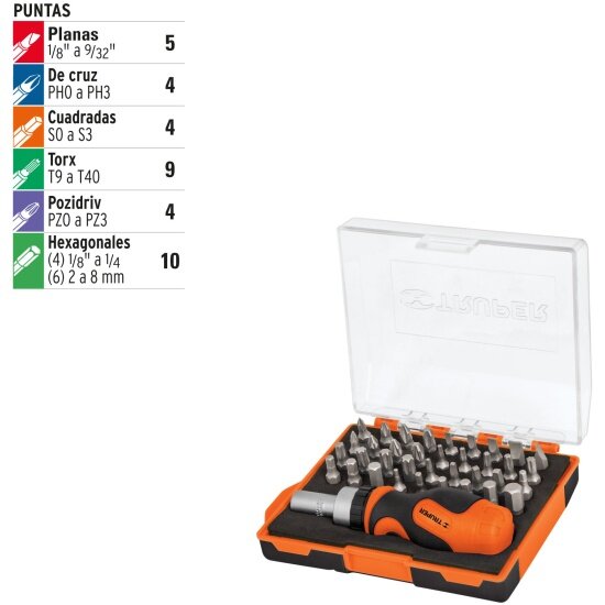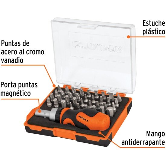 Отвёртка со сменными битами TRUPER 17845, 37 предм., черный/оранжевый