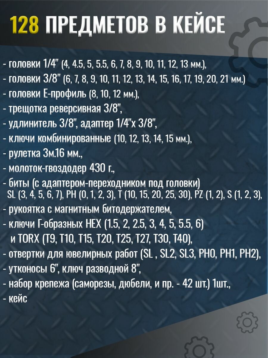 Набор инструментов 128пр. 1/4'',3/8''