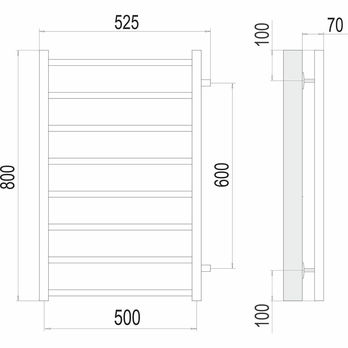 Водяной полотенцесушитель Energy Ideal 800x500
