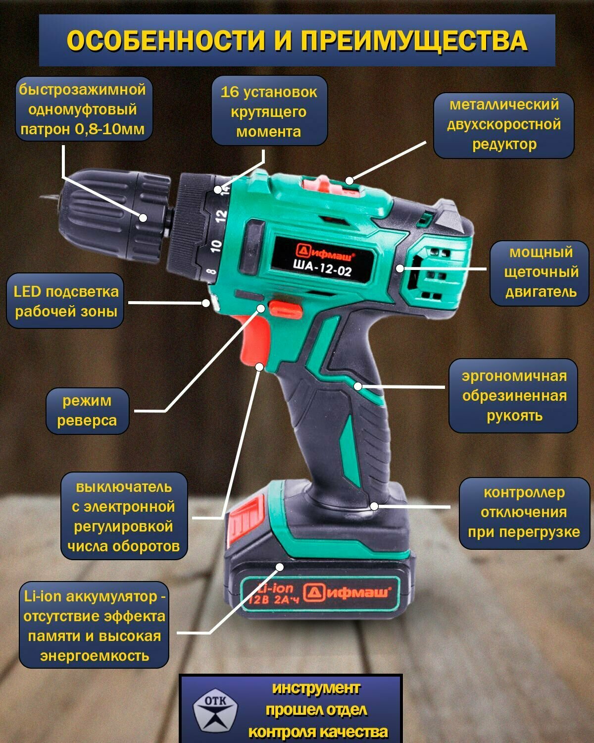 ША-12-02 Шуруповерт аккумуляторный "дифмаш" интересное: