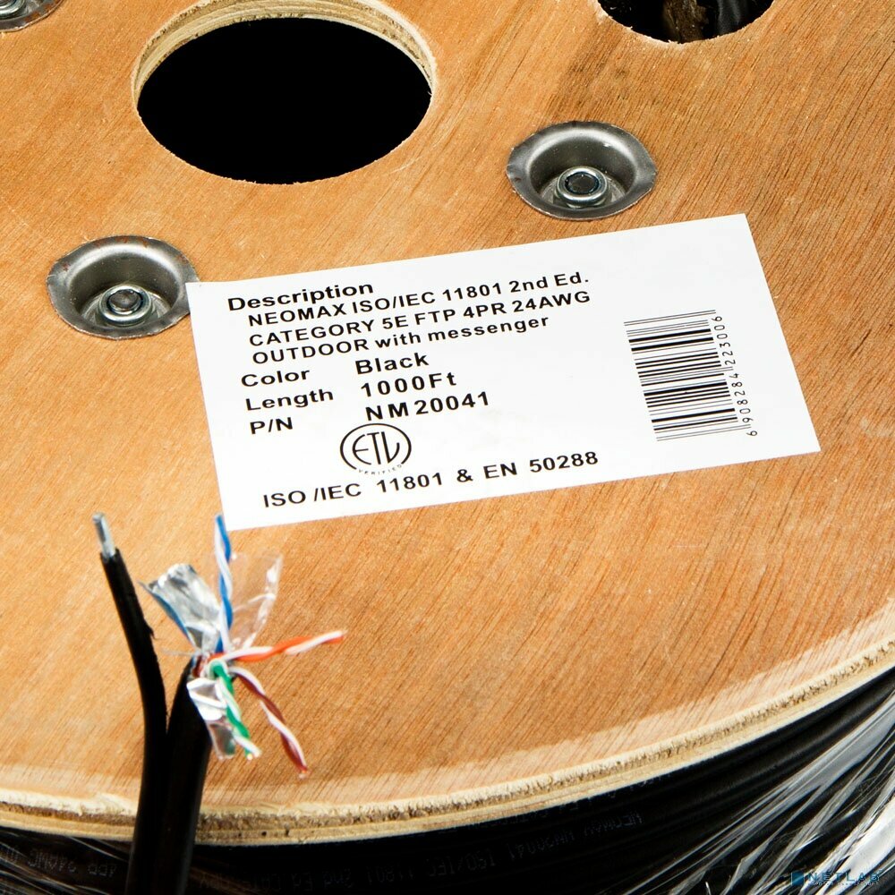 Купить NEOMAX [NM20041] Кабель F/UTP cat.5e 4 пары (305 м) 0.52 мм (24 AWG) Медь, стальной трос 2.0мм, внешний PE, черный (NM20041)