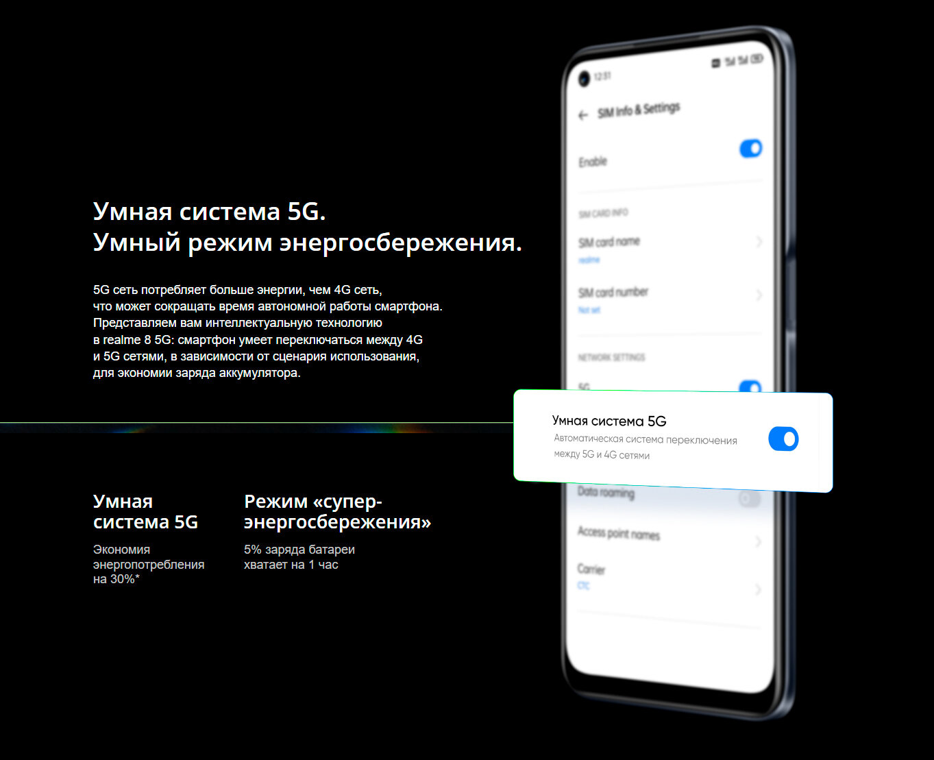 СохранитьМобильный телефон Realme 8 5G 4/128 ГБ (NFC) Global, Blue интересное: