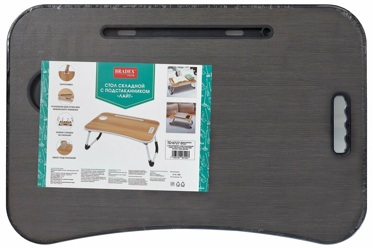 Купить BRADEX Стол складной с подстаканником «лайт», 59,5x39,5x26,4см, мдф, металл, темн. дерево, чёрный TD 0727