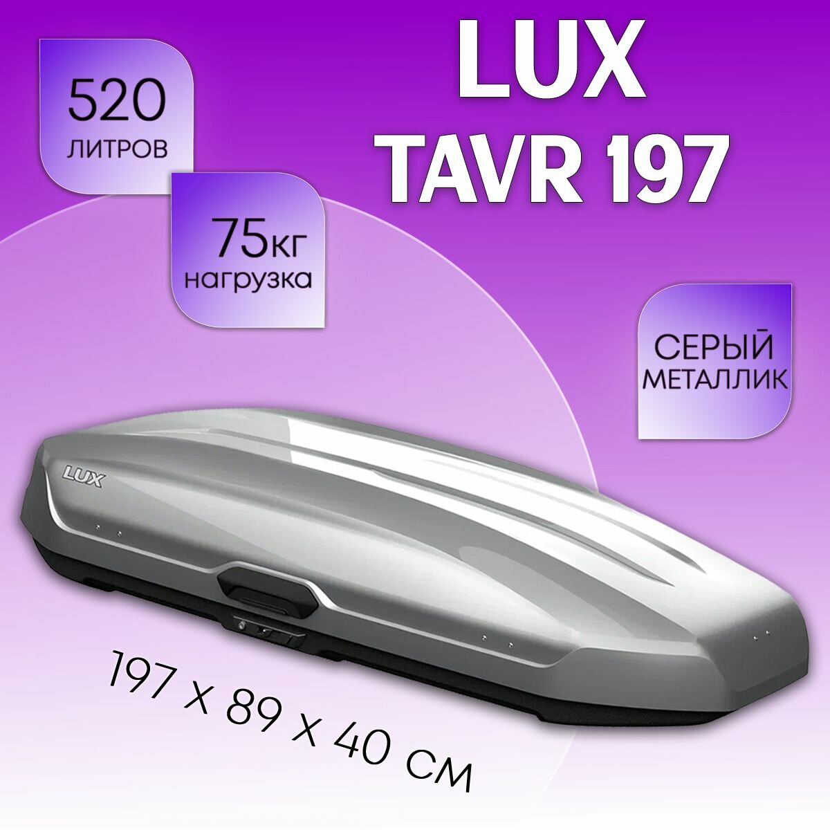 СохранитьАвтобокс LUX TAVR 197, 520л, серый глянцевый, 197х89х40, с двухсторонним открыванием, арт:LUX-791972 интересное:
