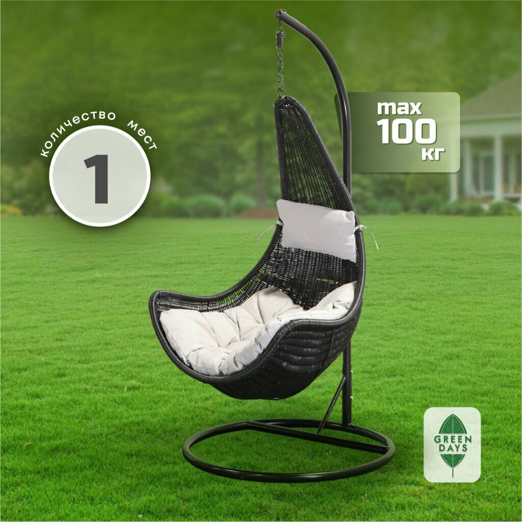 Подвесное кресло Кокон, 1-мест, 65х80х198 см, 100 кг, Green Days, черное, подушка серая, TZF-H020-A200H-7 интересное:
