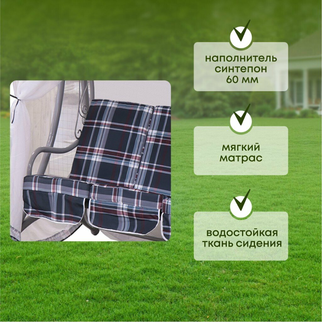 Качели садовые трёхместные Green Days Серая клетка LG5457M с москитной сеткой, до 240 кг