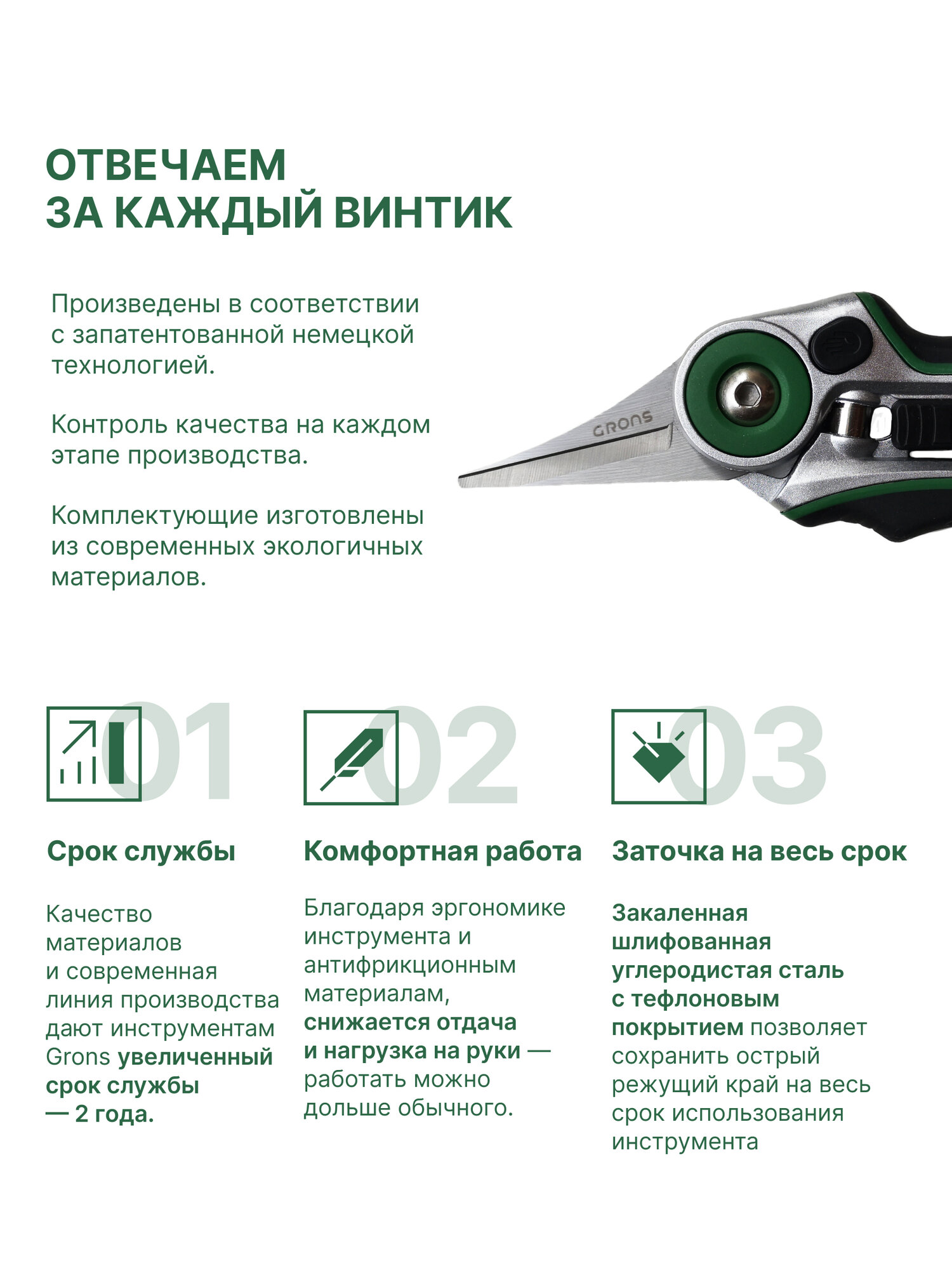 Ниже Вы можете прочитать отзывы на ножницы садовые GRONS 205мм, ознакомится с подробными характеристиками, посмотреть интересные обзоры и фотографии на ножницы садовые GRONS 205мм.