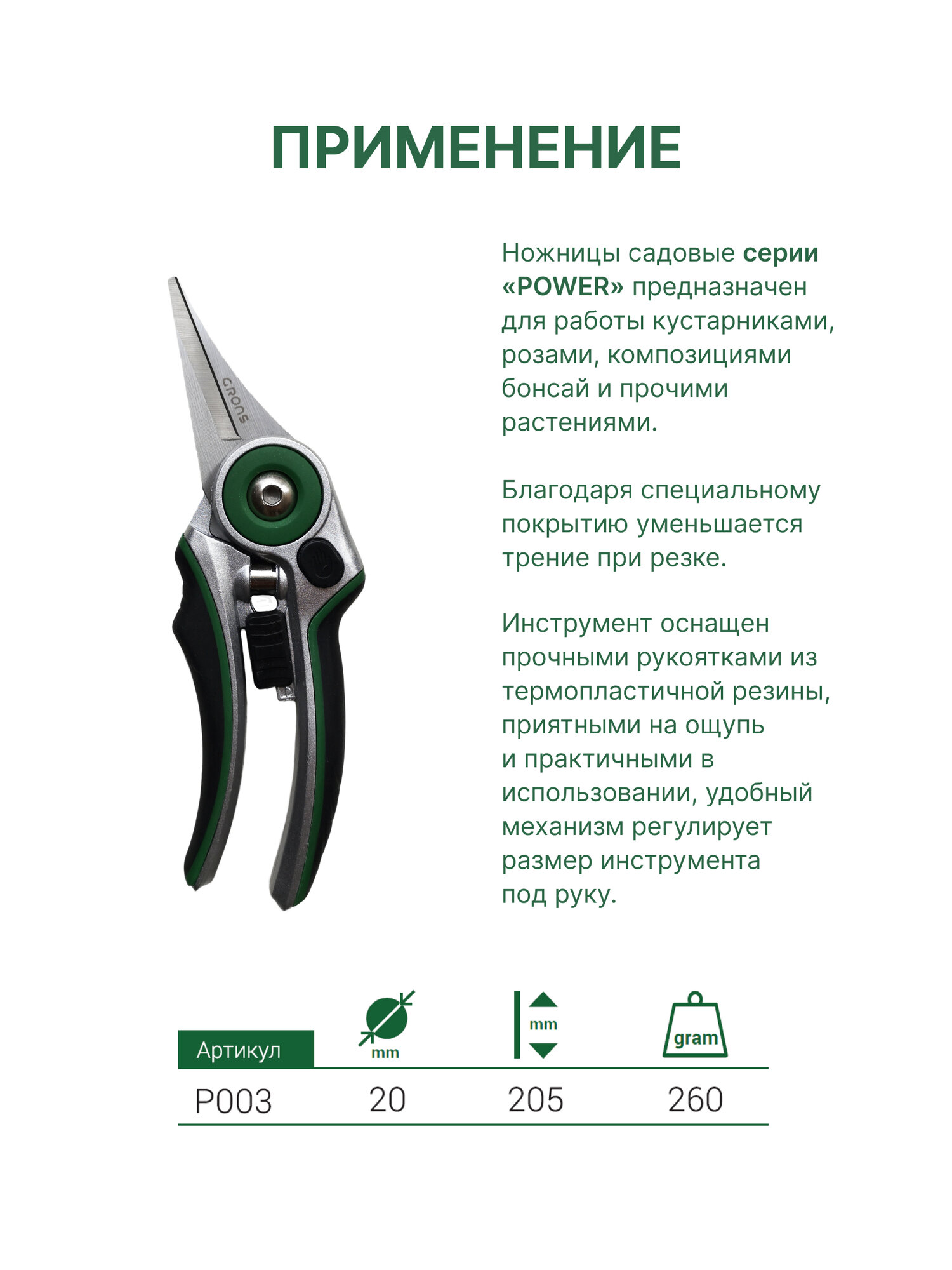 Grons / Садовые ножницы для цветов, обрезки веток деревьев, кустарников / Кусторез POWER P003