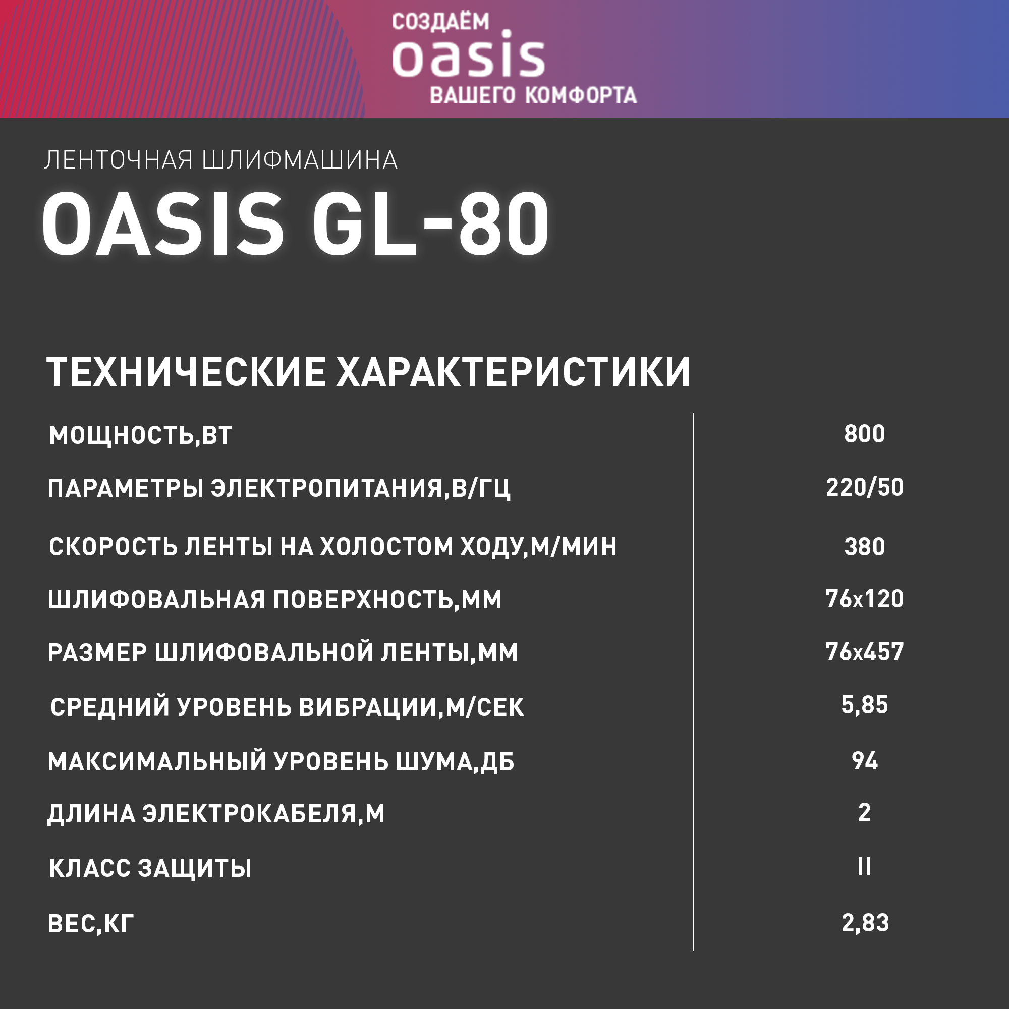 Oasis GL-80 Шлифовальная машина ленточная .