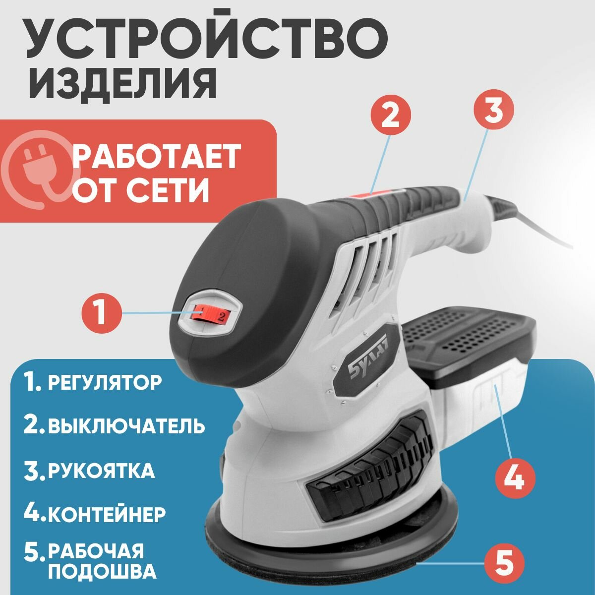 Вибрационная шлифмашина Dexter 330SHS3.5, 330 Вт