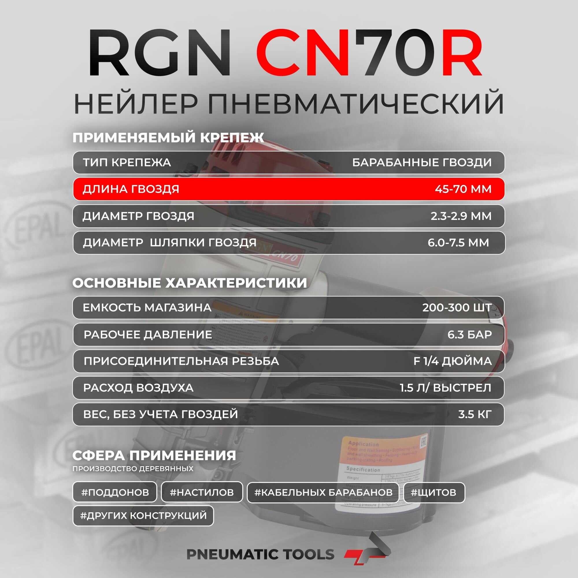 | Минимальная длина гвоздя | 45 мм |
