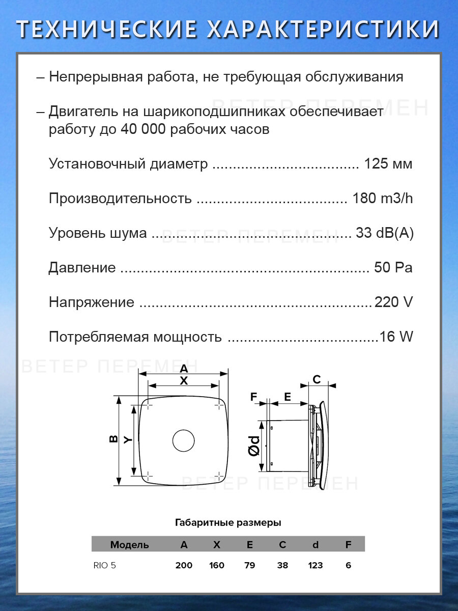 RIO 5C вентилятор вытяжной бесшумный c обратным клапаном на шарикоподшипниках D123