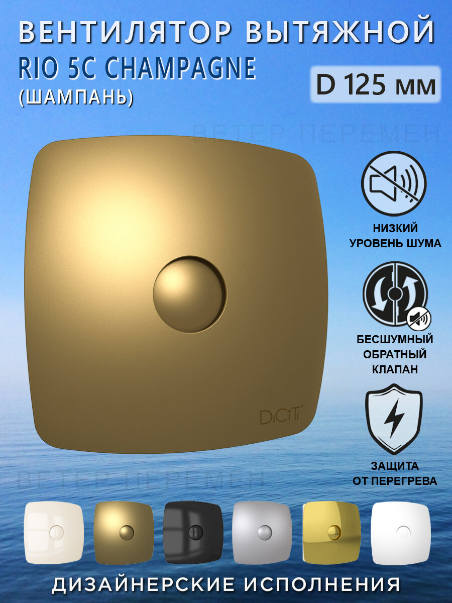 Вентилятор вытяжной осевой DICITI RIO 5C Champagne, с обратным клапаном, с двигателем на шарикоподшипниках, D 125 мм, шампань