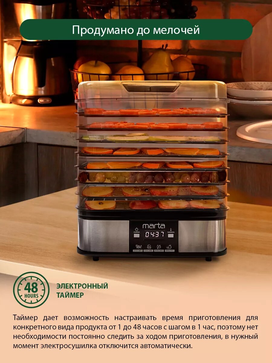MARTA MT-1884 11 поддонов {8+3} черный жемчуг сушилка д/фруктов,овощей