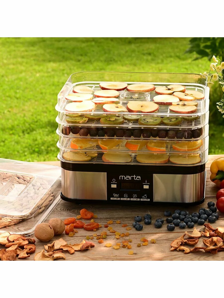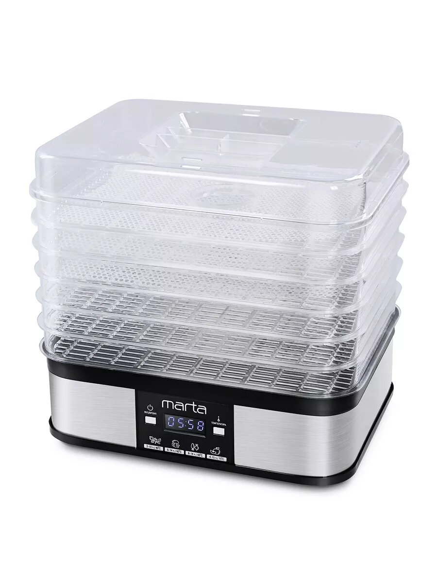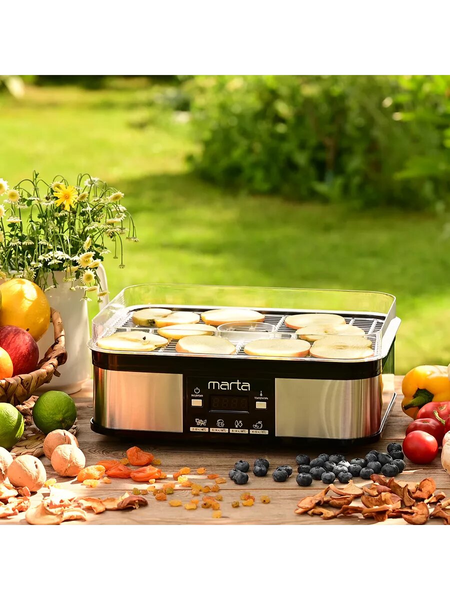Купить Сушилка для овощей и фруктов MARTA MT-1885 6 уровней + 1 поддон для пастилы + 3 для ягод с электронным контролем температуры, черный жемчуг