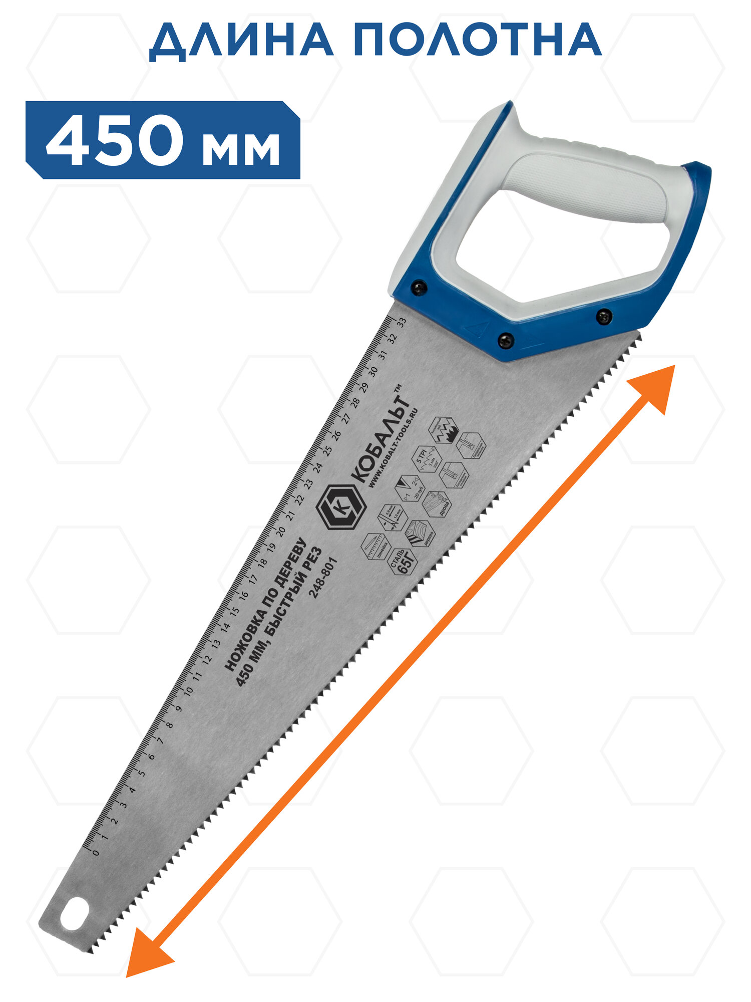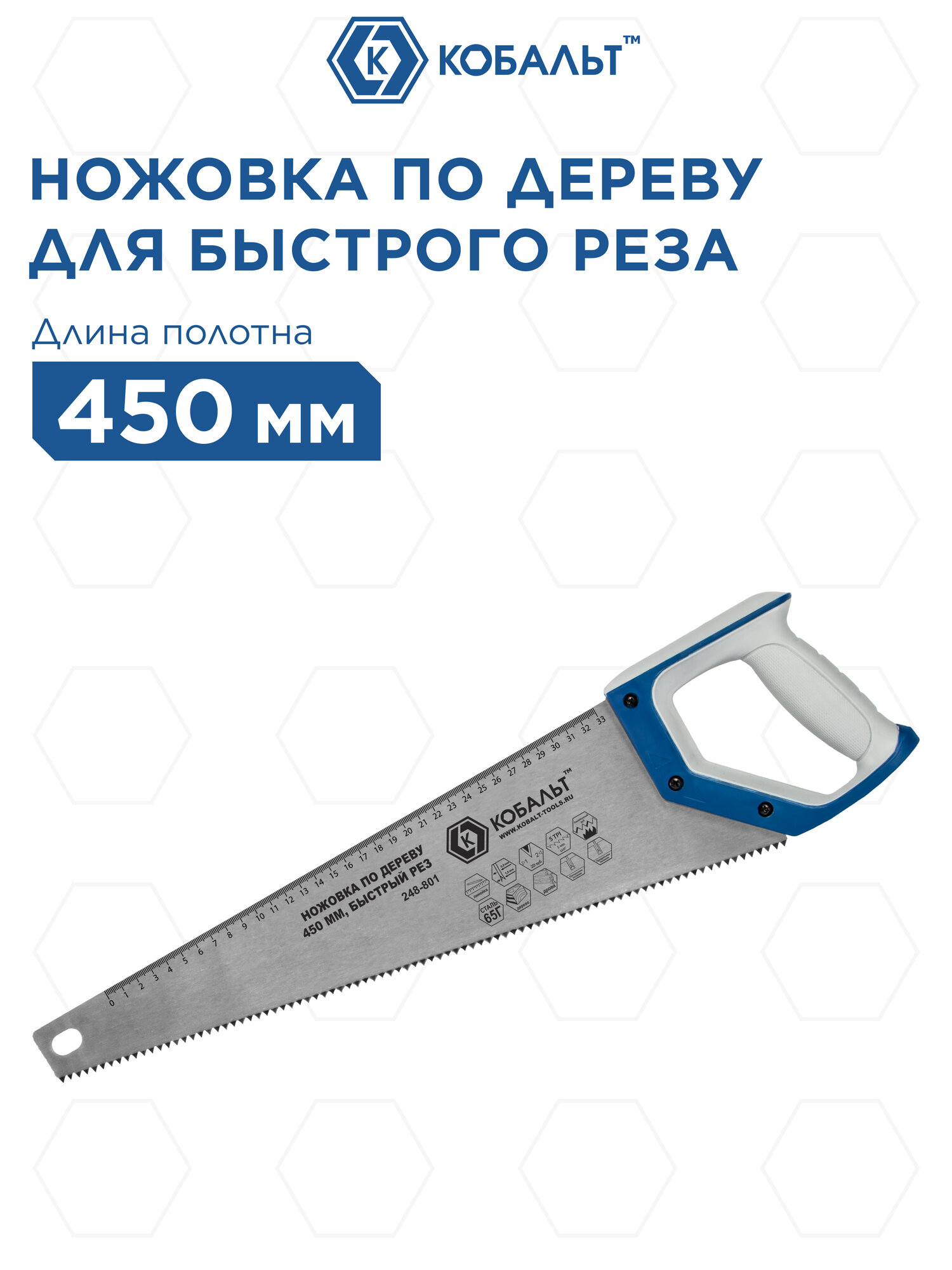 Ножовка по дереву кобальт 450 мм шаг 5,0 мм
