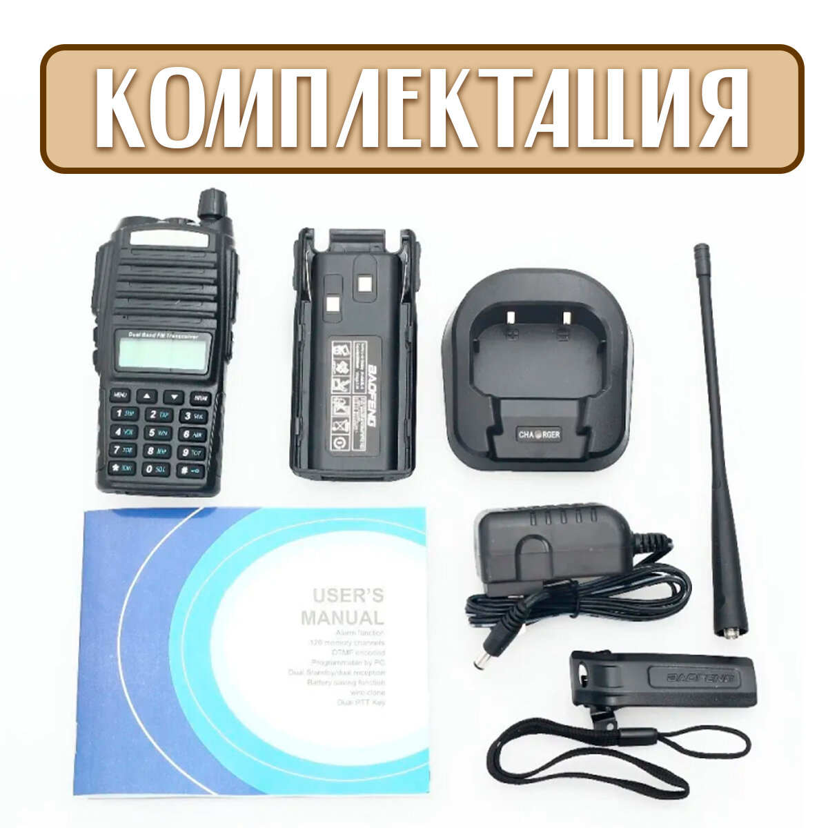 Рация Baofeng UV-82 Черная Комплект 2 шт. / Портативная радиостанция Баофенг для охоты и рыбалки с аккумулятором на 2000 мА*ч и радиусом 10 км