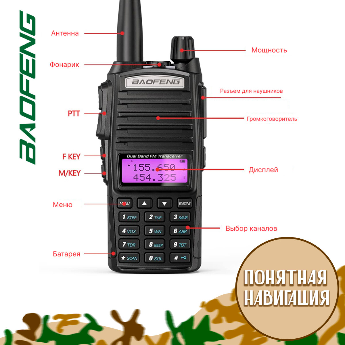Рация BAOFENG UV-82 8 ват для охоты и рыбалки мощная 2 шт, 3 режима