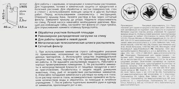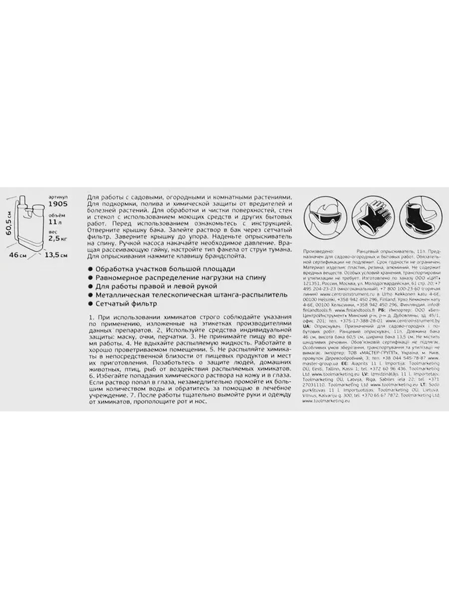 Опрыскиватель ранцевый Finland 1905, 11 л