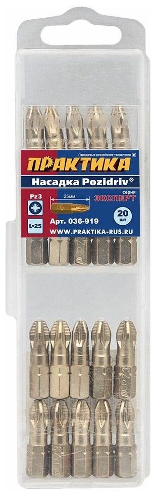 Бита отверточная ПРАКТИКА ."Эксперт" PZ-3 х 25мм Tin (20шт), кассета ("Эксперт", 25мм, Tin, 20шт, кассета) интересное:
