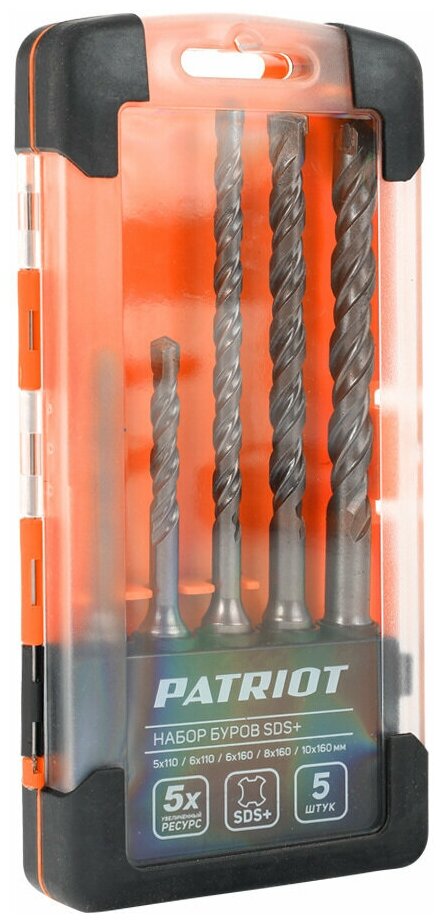 Набор буров PATRIOT SDS Plus, 5 шт: 5x110мм, 6x110мм, 6x160мм, 8x160мм, 10x160мм в боксе
