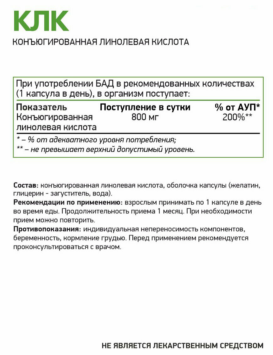 NATURALSUPP CLA Конъюгированная Линолевая Кислота 800мг (60 капсул) (БАД) интересное: