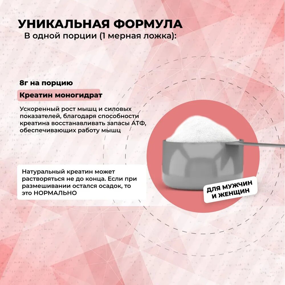 | Плюсы: | Оооочень вкусный креатин, рабочий |