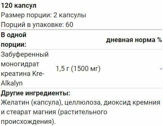 Kre-Alkalyn(R) Creatine 750 mg 120 капсул
