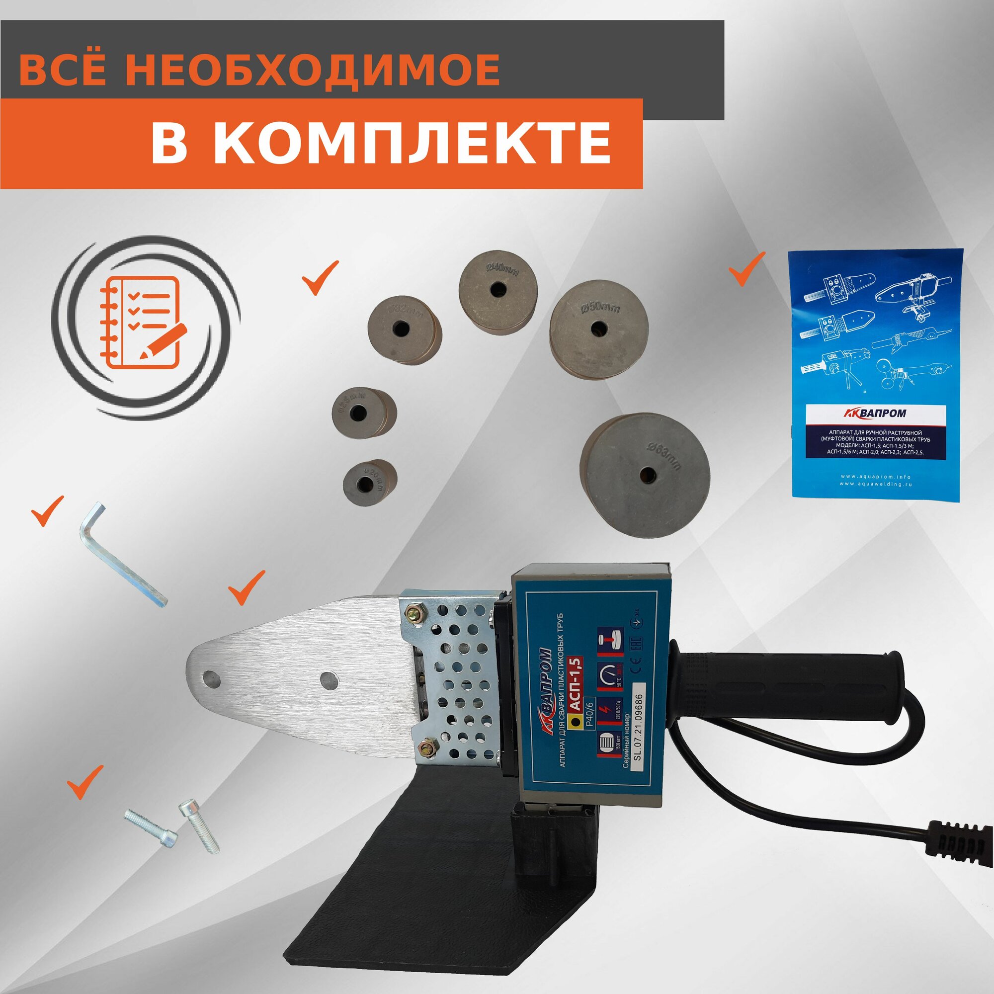 Сварочный аппарат для полипропиленовых труб AQUAPROM P40/6 1500 Вт PP-R (Насадки 20-63)Пласт. короб. интересное: