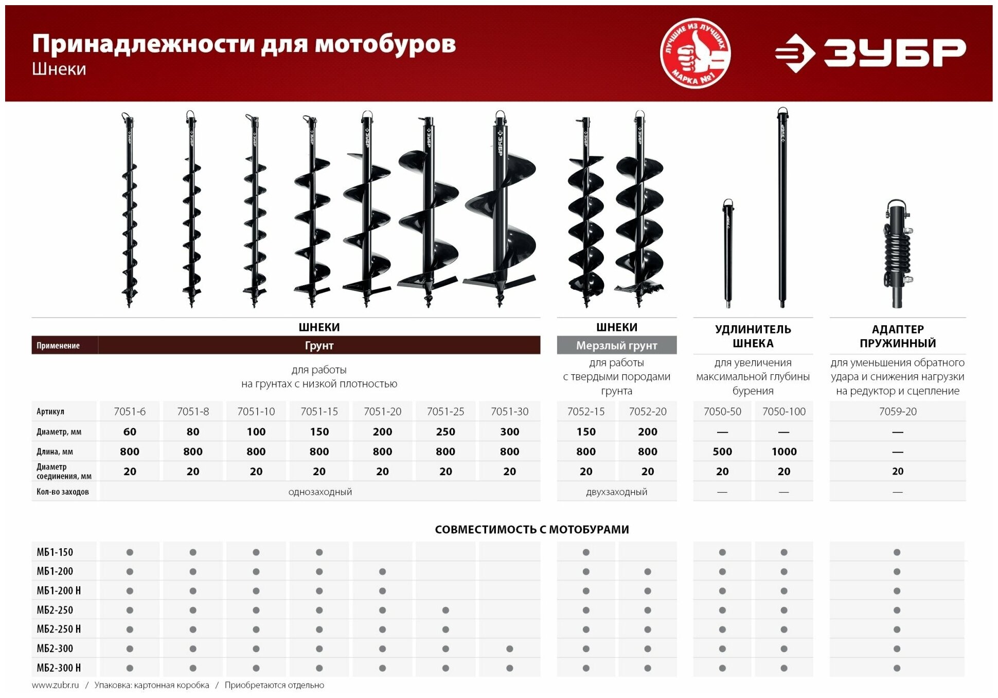 Ниже Вы можете прочитать отзывы на ЗУБР Шнек для мотобуров, грунт, d=250 мм, однозаходный, ЗУБР, ( 7051-25 ), ознакомится с подробными характеристиками, посмотреть интересные обзоры и фотографии на ЗУБР Шнек для мотобуров, грунт, d=250 мм, однозаходный, ЗУБР, ( 7051-25 ).