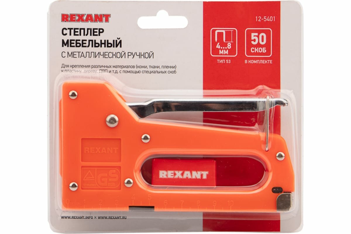 Степлер мебельный REXANT с металлической ручкой, Тип скоб: прямоугольные ТИП53, 4-8 мм