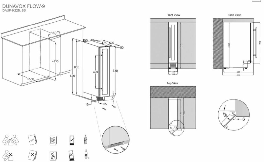 Встраиваемый винный шкаф Dunavox DAUF-9.22B компрессорный (встраиваемый / отдельностоящий холодильник для вина на 9 бутылок) интересное: