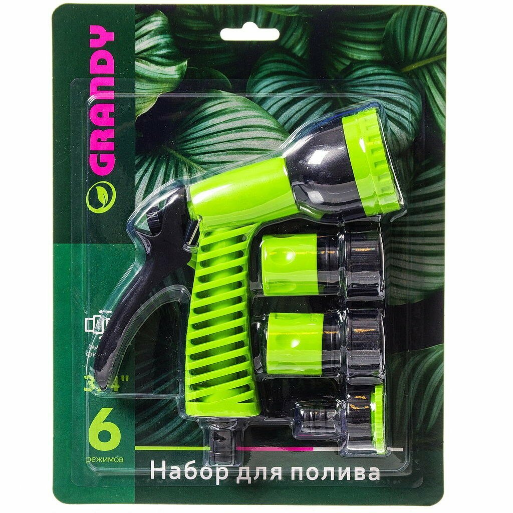 Пистолет-распылитель Grandy, 6 режимов + 3 фитинга для шланга