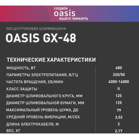 Вибрационная эксцентриковая шлифовальная машина Oasis GX-48 4640039480518